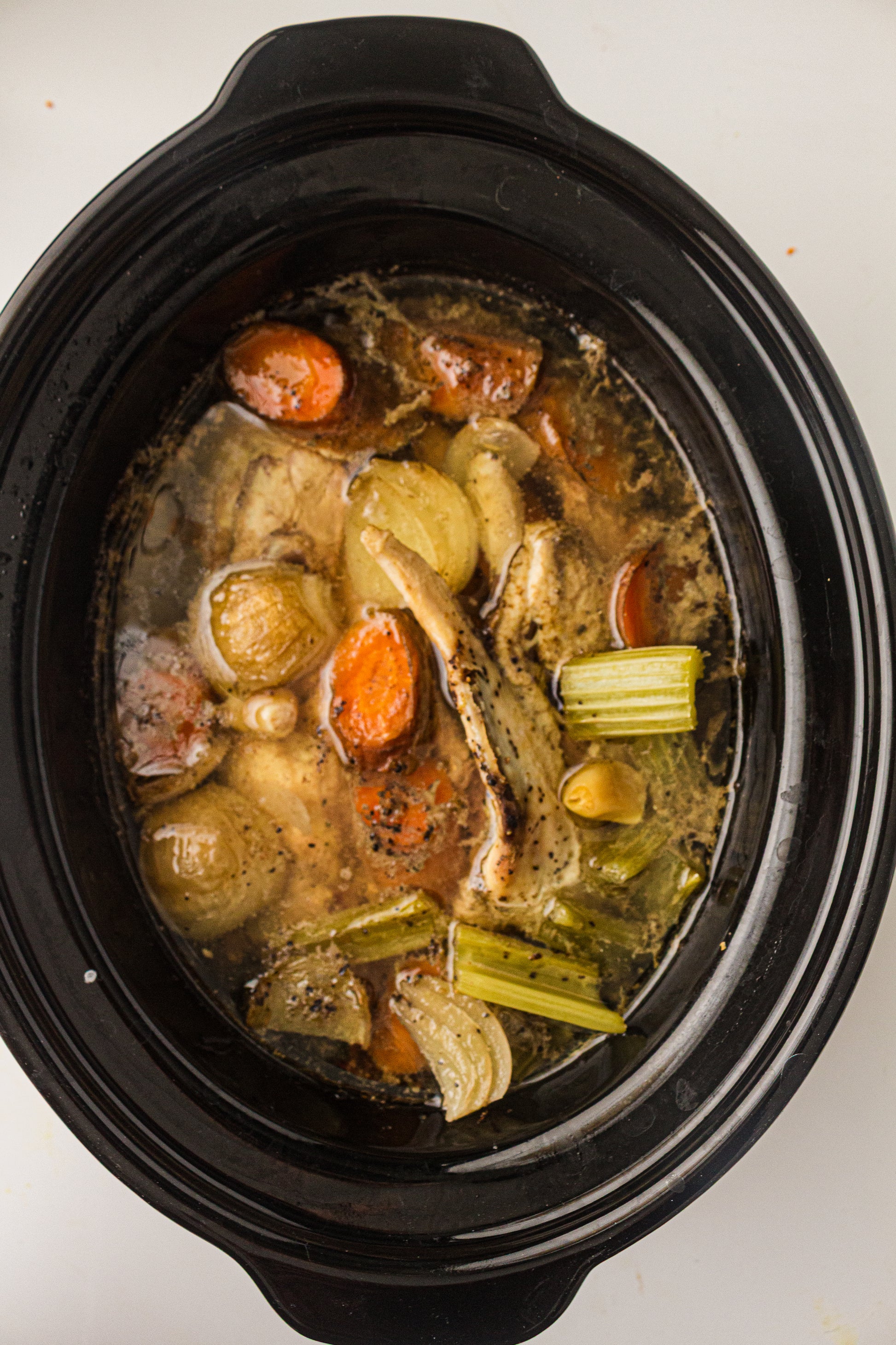 This slow cooker chicken stock recipe creates a rich, flavorful homemade broth with minimal effort. Simply add bones, vegetables, and water to the slow cooker and let it gently simmer for hours.